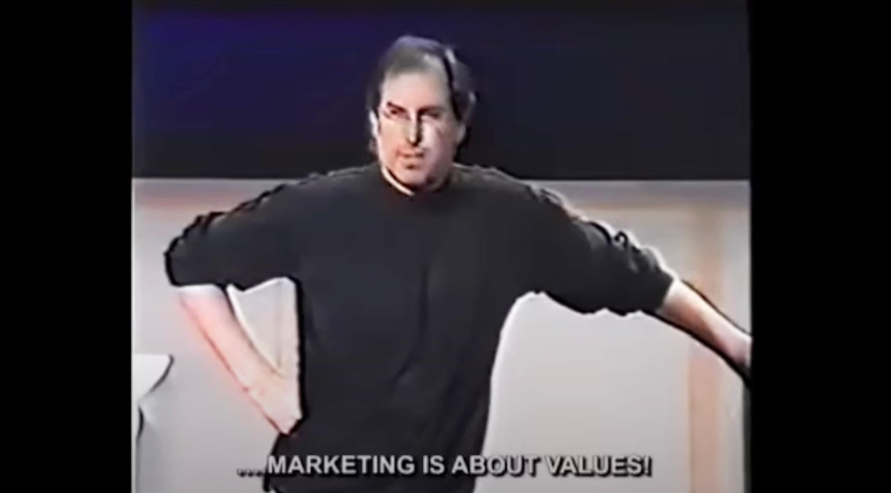 Whenever I talk about high‑level marketing, I quote Steve Jobs: "Marketing is about values."
